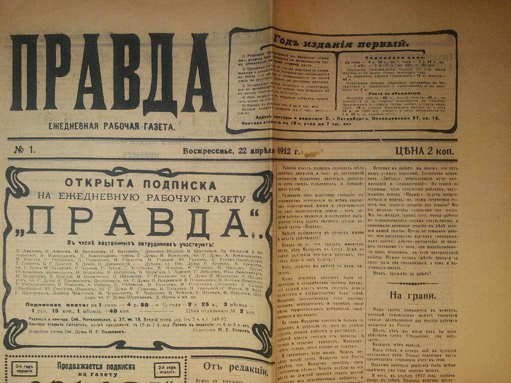 - 1024px-Pravda_22_april_1912_Первый_номер_Права_22_апреля_1912-Gemeinfrei: Gemeinfrei | Gemeinfrei