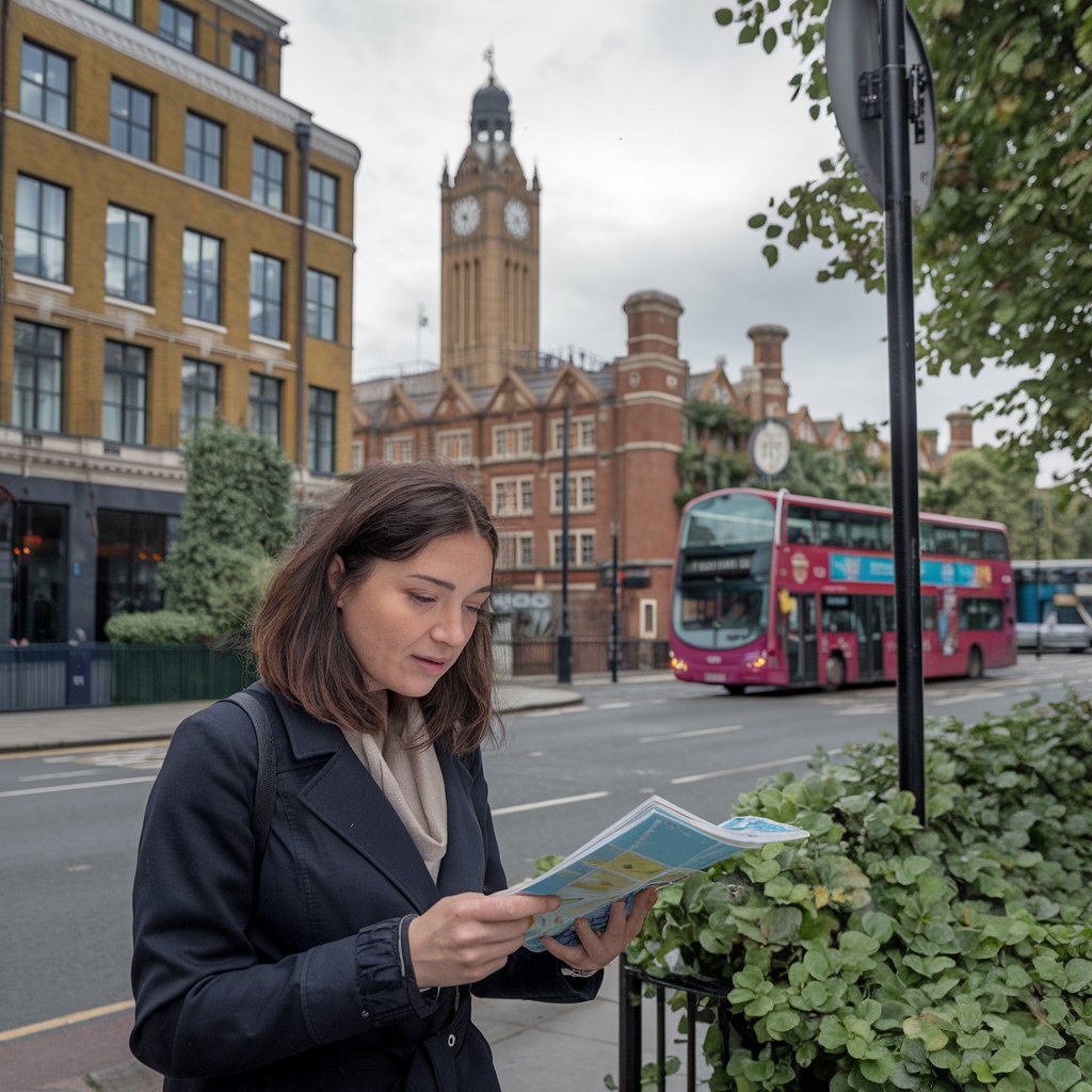 - Frau in London schaut auf Stadtplan KI wn: Werner Niedermeier | Werner Niedermeier