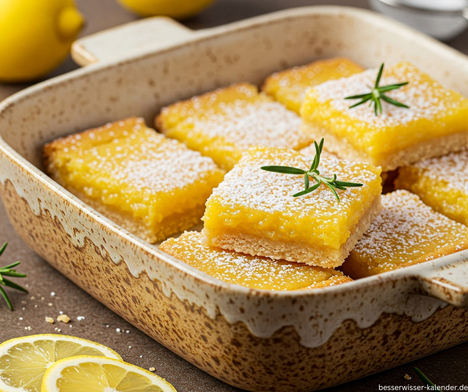 Der Zitronenschnitten-Tag (National Lemon Bar Day) wird in den Vereinigten Staaten jedes Jahr am 15. Oktober gefeiert. Er ehrt ein Gebäck, das zu den erfrischendsten Klassikern der amerikanischen Backkunst zählt.